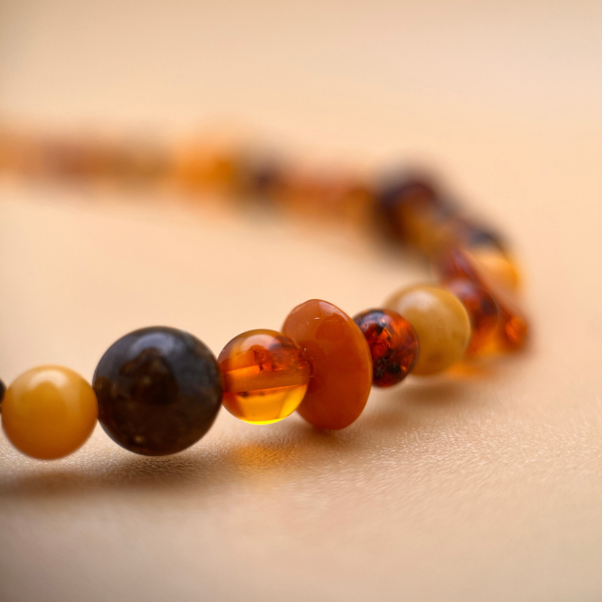 Part of our 45th Anniversary Signature collection, this necklace is a celebration of amber’s timeless beauty and natural variety – a tribute to four decades of craftsmanship. Each piece is made with carefully selected amber beads in various shapes and warm tones, ranging from light golden to deep cognac. All beads are 100% genuine Baltic amber.