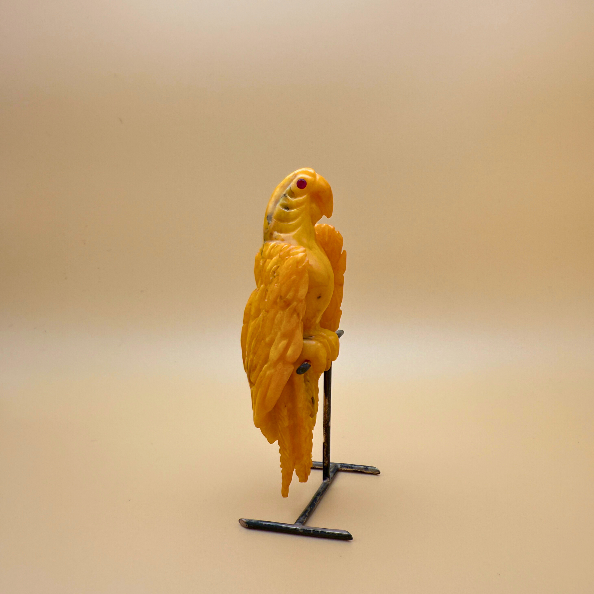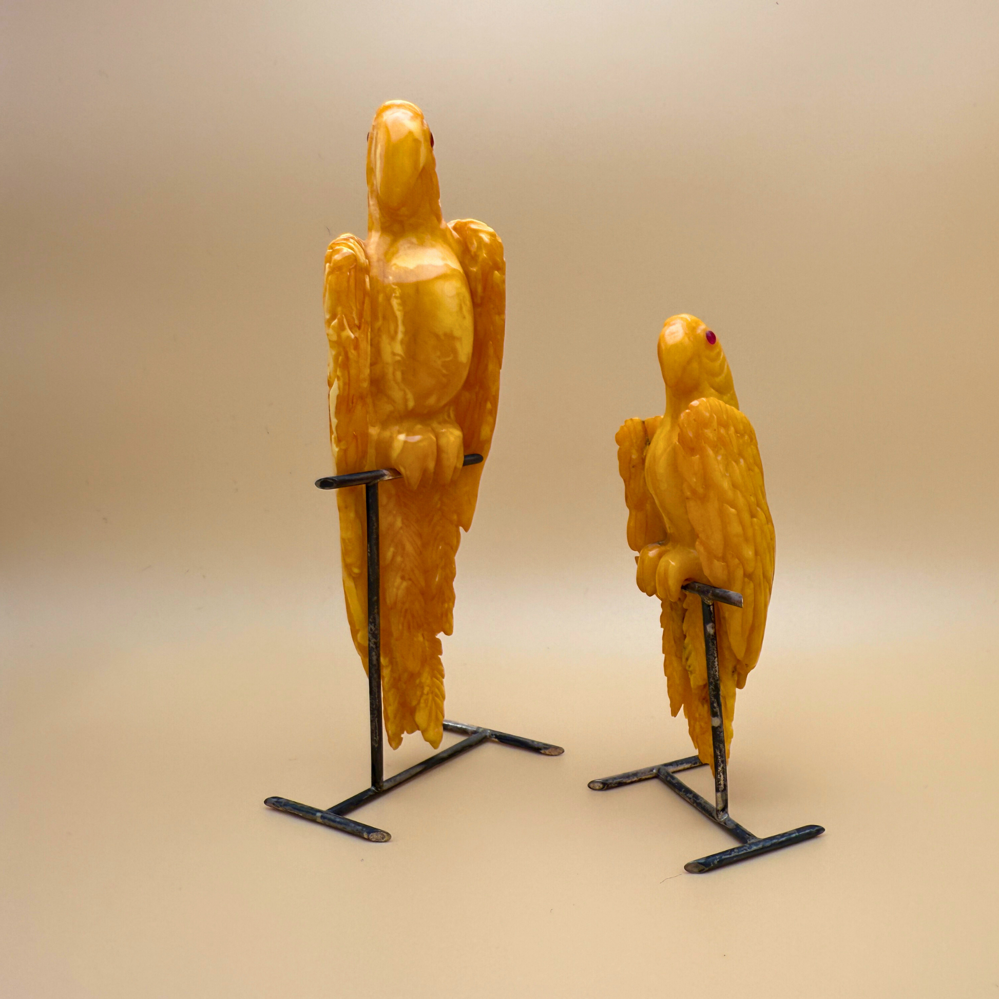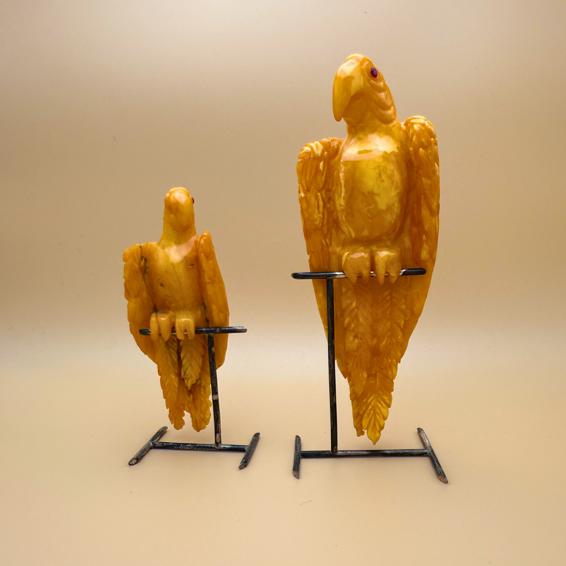 Hver papegøje er unik, formet af både håndværkerens hænder og de naturlige mønstre i det antikke rav, hvilket bevarer varme og historie i hver kurve.