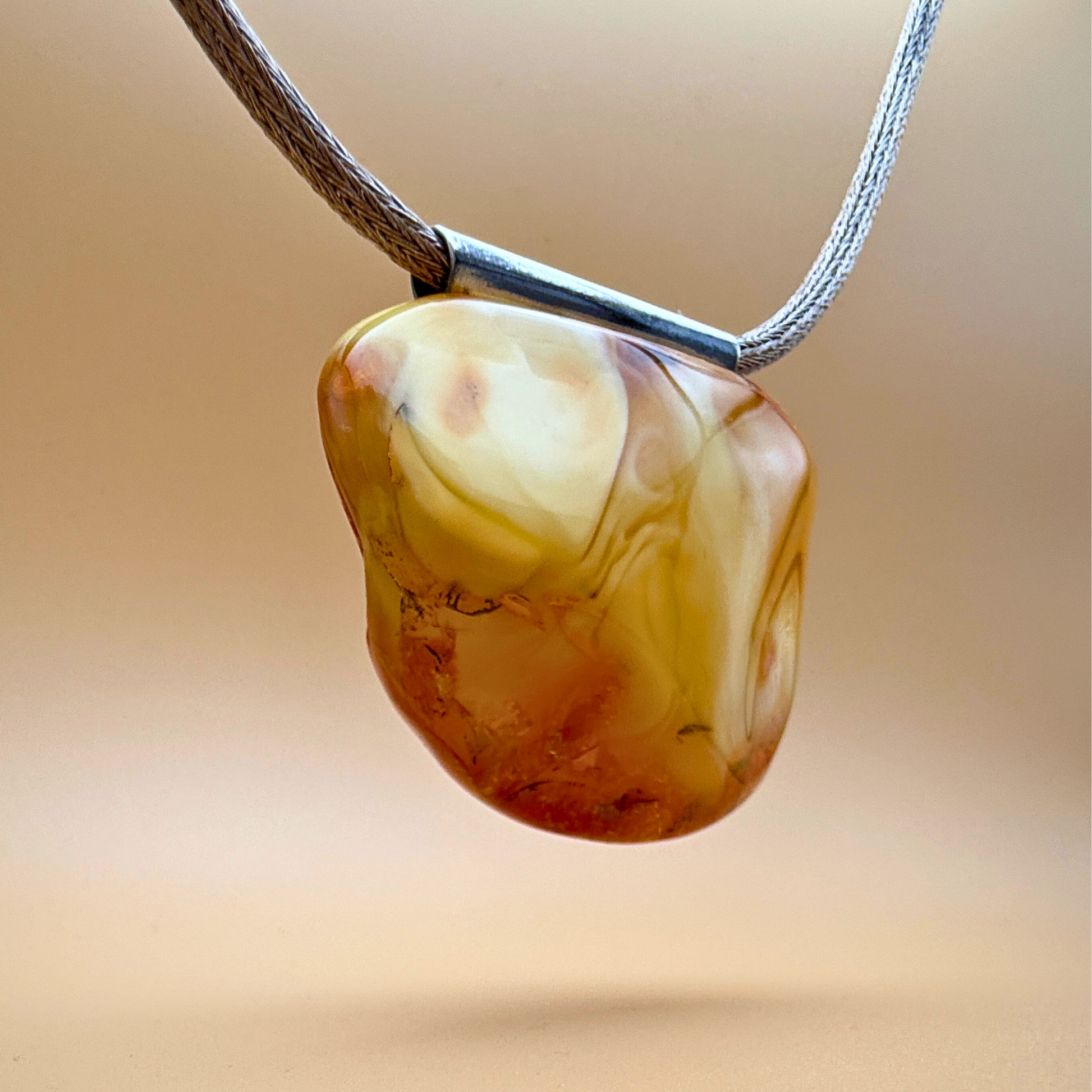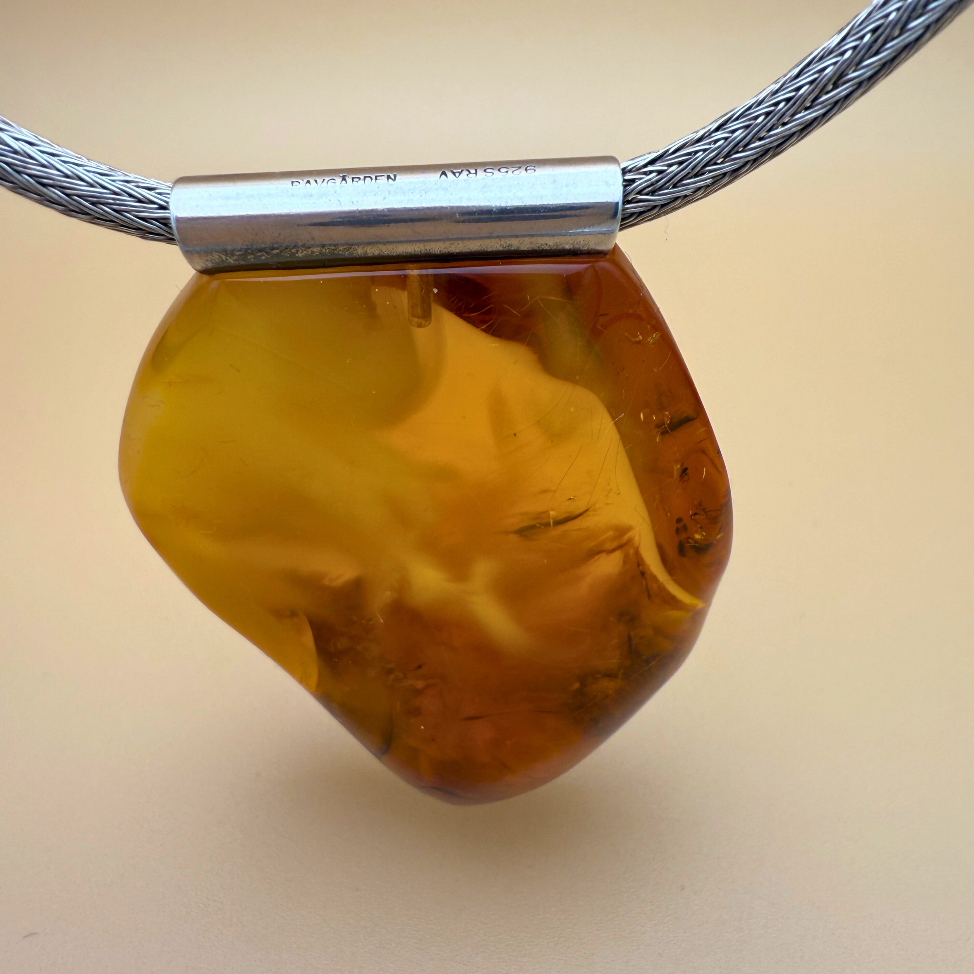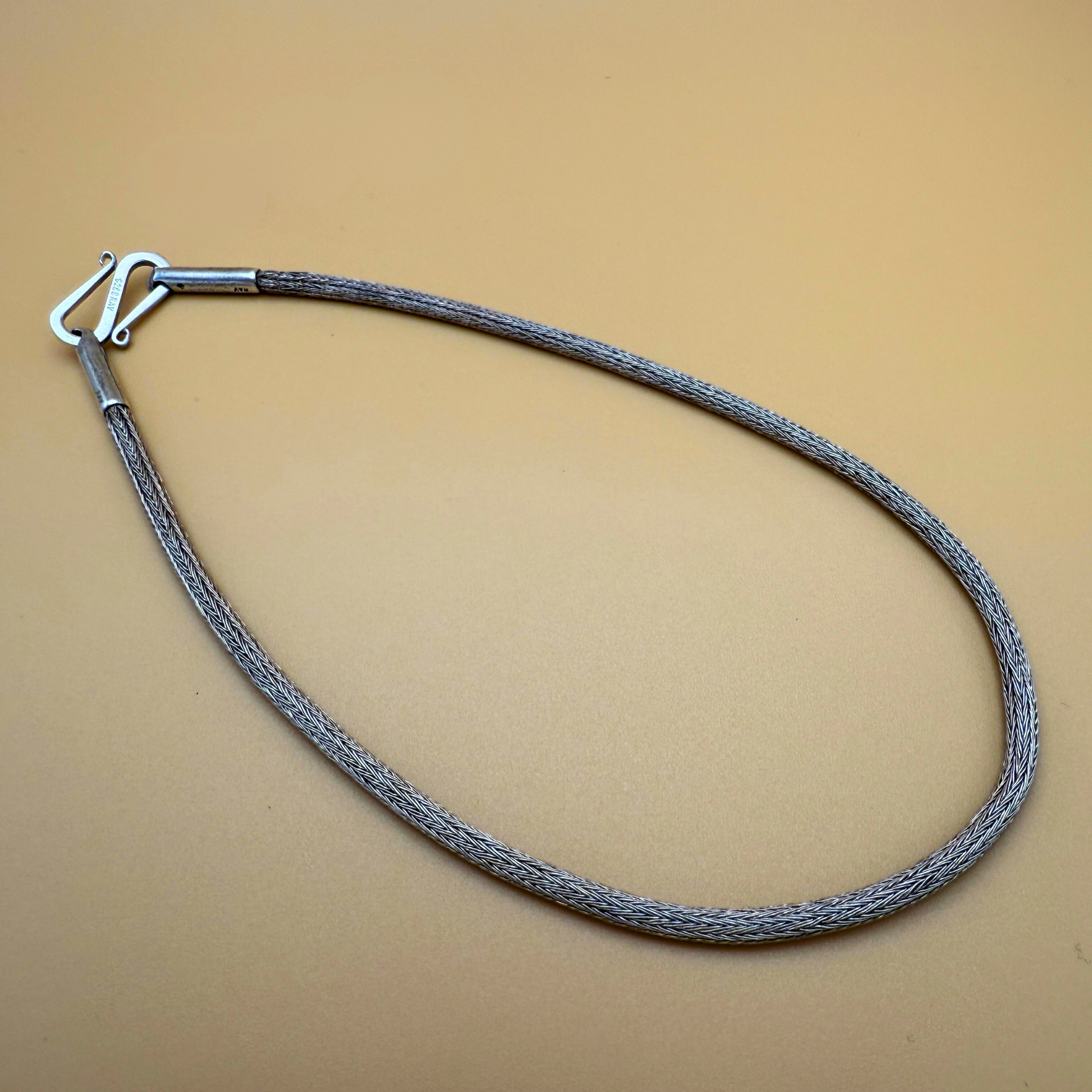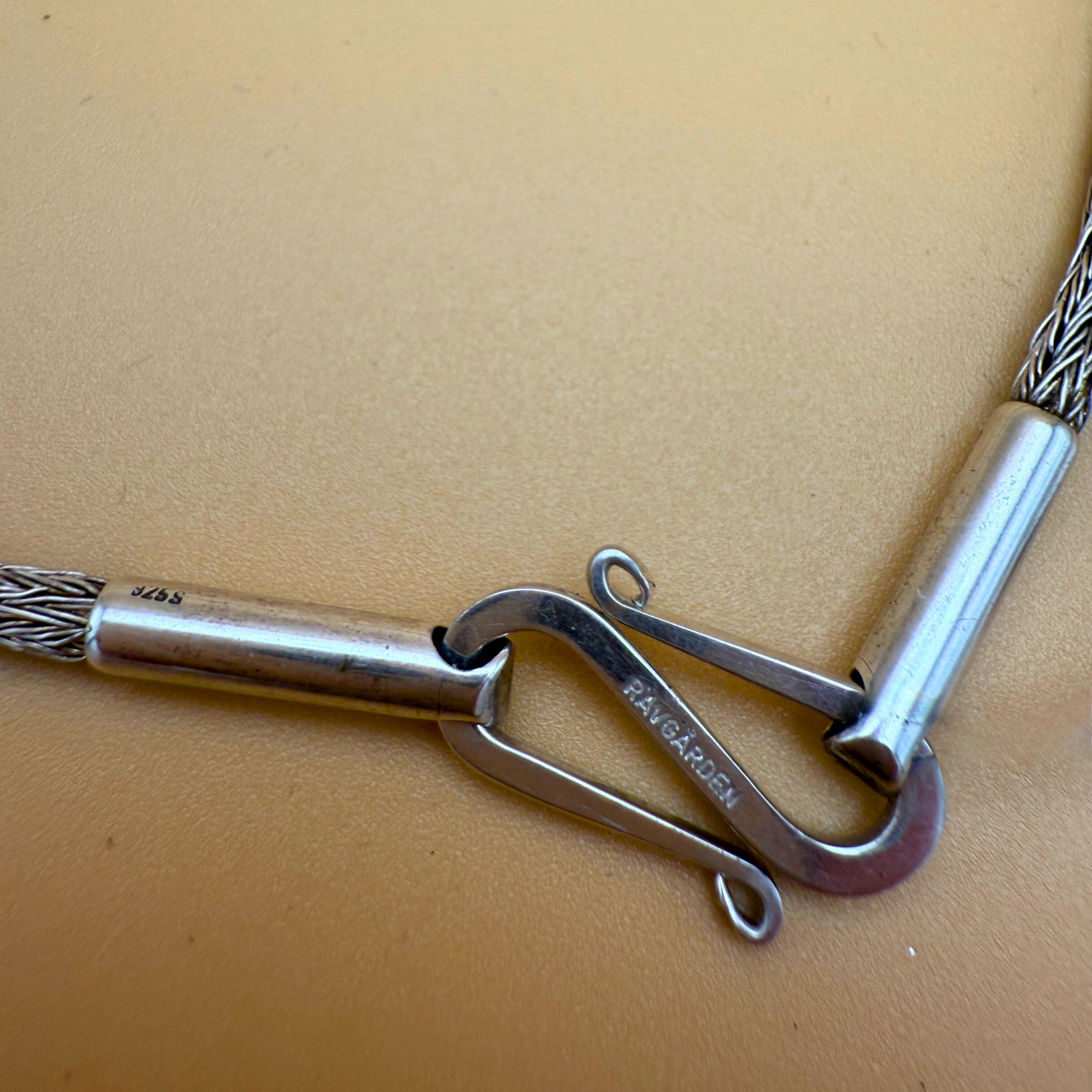 Hver kæde er dobbeltstrikket i hånden på Ravgården med 0,35 mm ren sølvtråd (999) . Indeni giver en kerne af naturlæder forbedret struktur og stabilitet, så kæden holder sin form smukt over tid. Trods sin styrke forbliver kæden blød og behagelig at have på – et stille udtryk for gennemtænkt design.