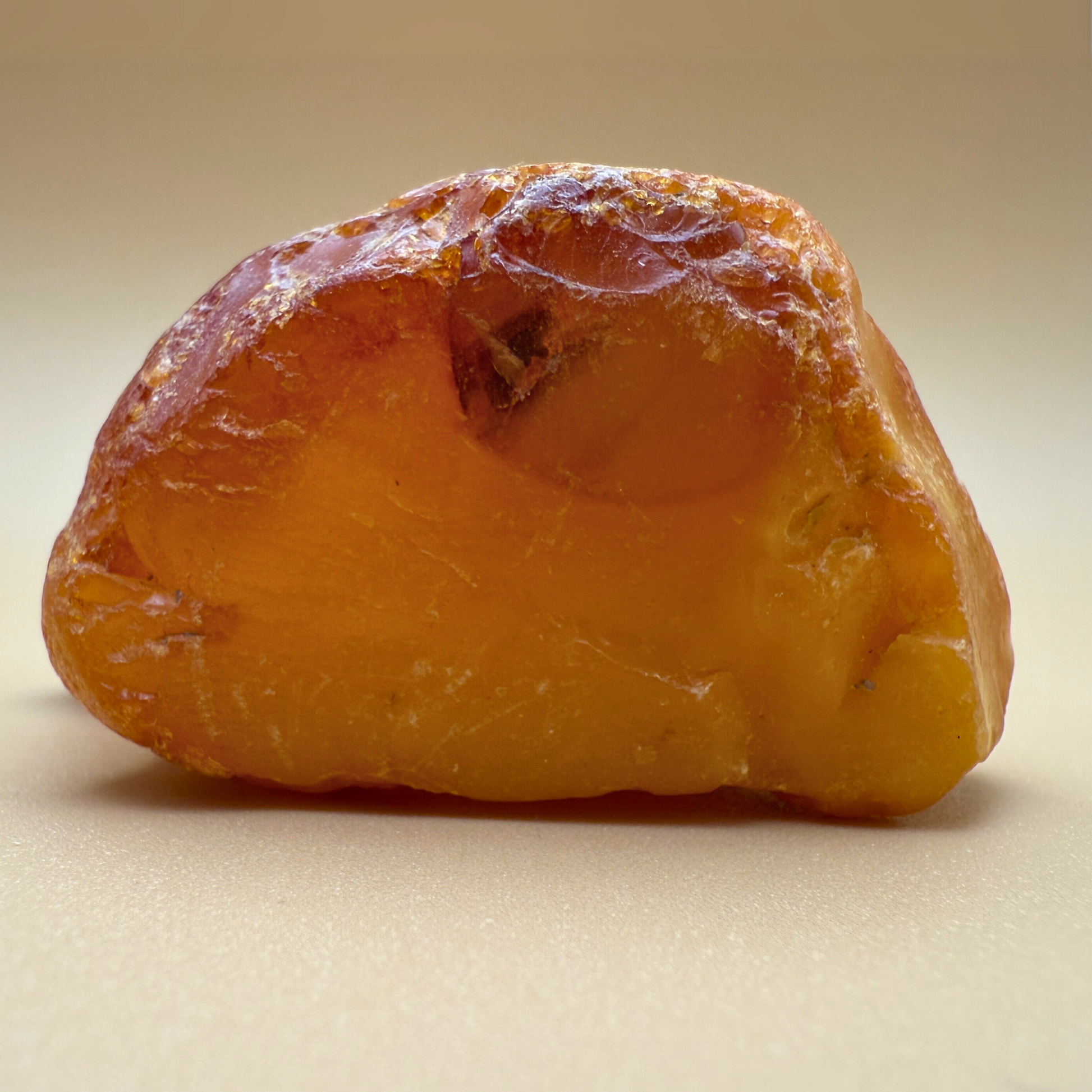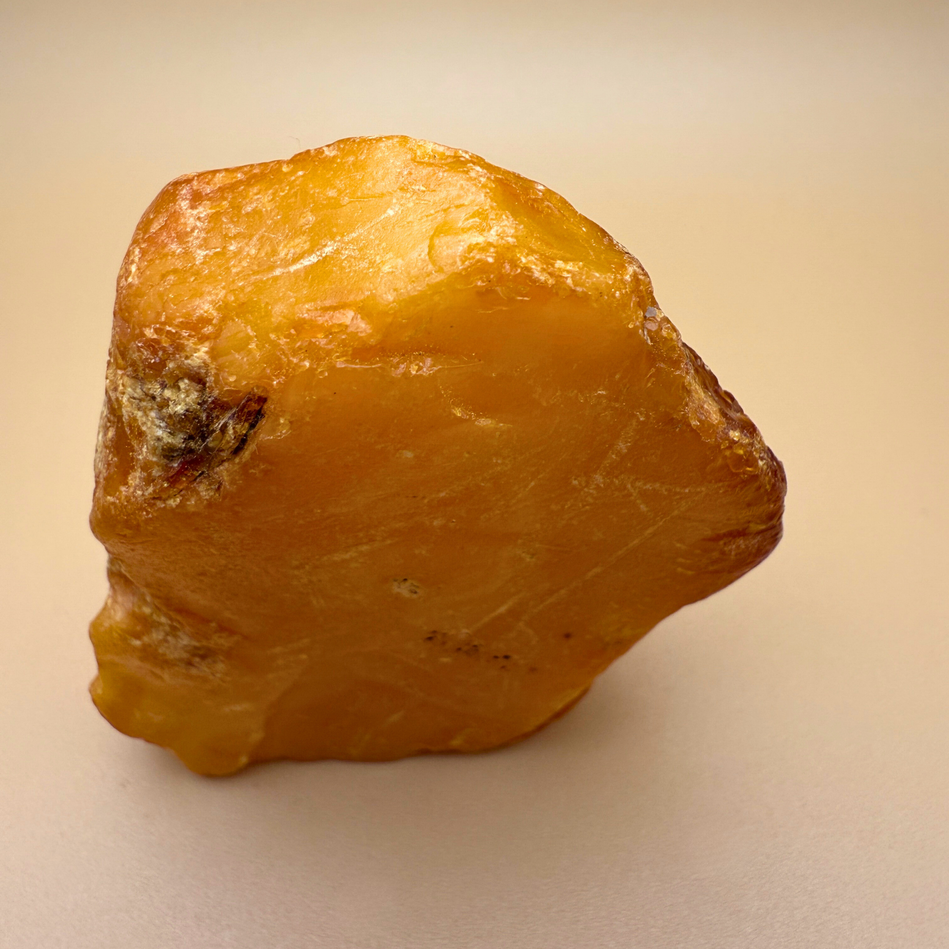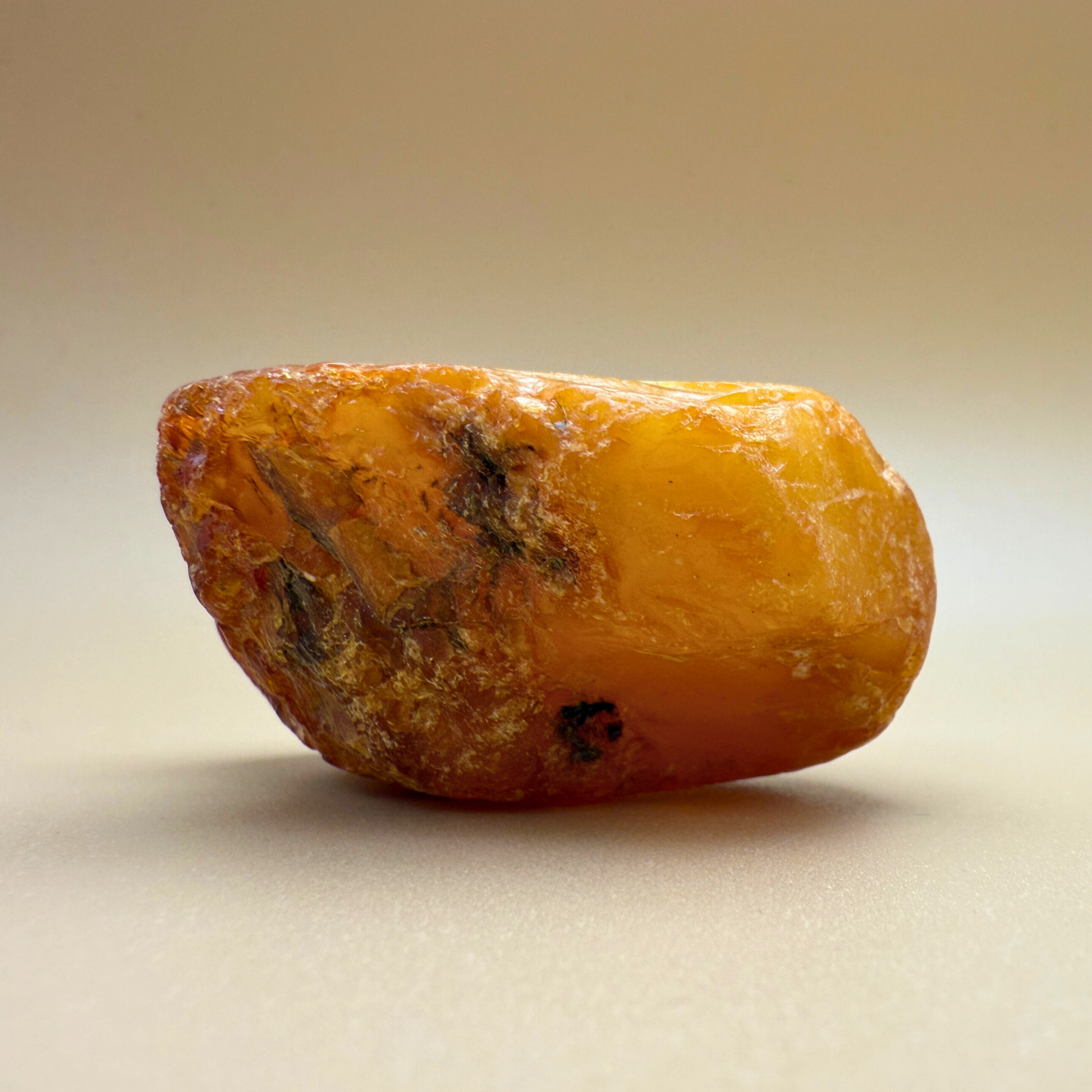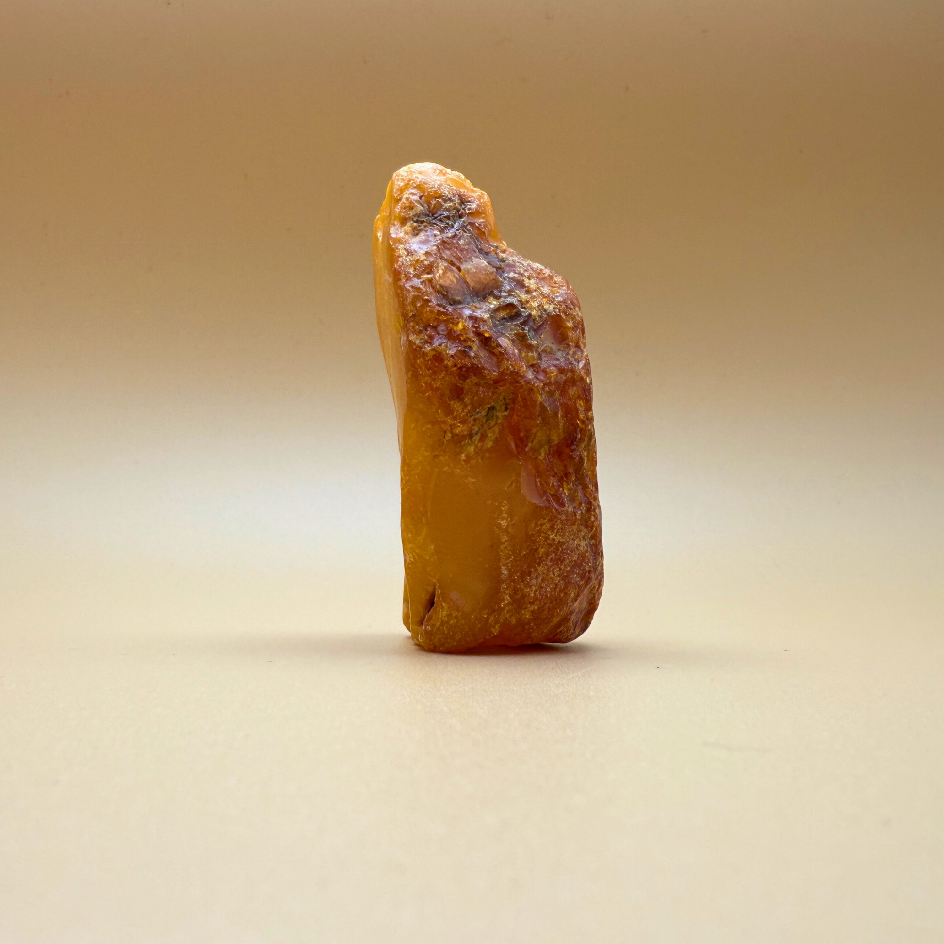 Denne 61 gram tunge rå danske ravskulptur er en lille skulptur formet af havet og tiden. Den er fisket i danske farvande og har to skarpt brækkede sider – sandsynligvis brækket af for århundreder siden – hvilket gør, at den kan stå smukt på flere måder.