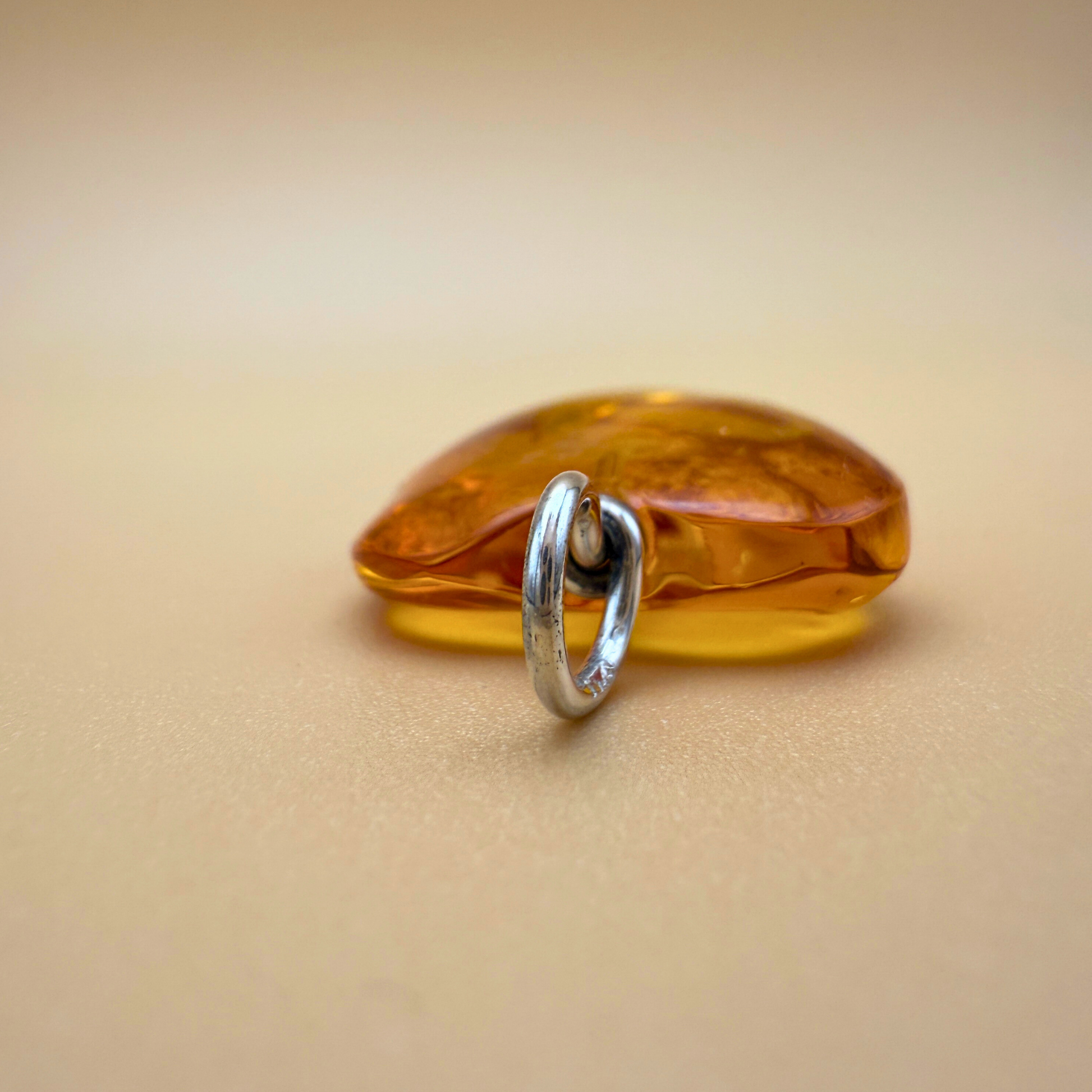 Klares, zitronengelbes Bernsteinherz mit handgefertigter Silberöse. Einzigartig. Handgefertigt in Dänemark.