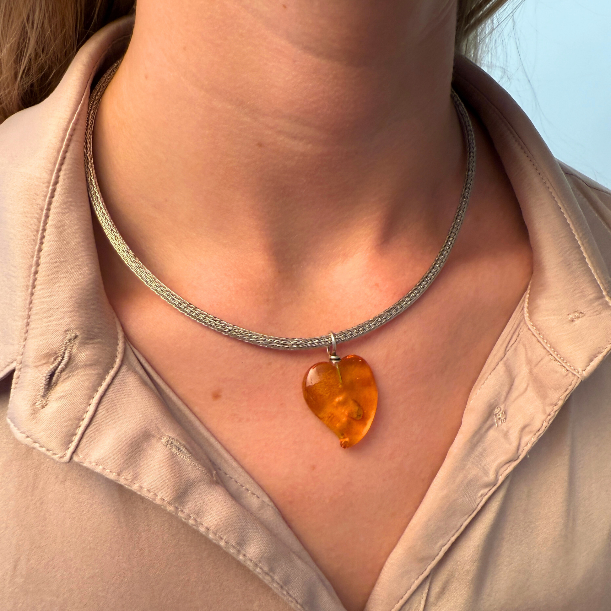 Bernsteinanhänger mit tanzendem Herz in klarem Citringelb