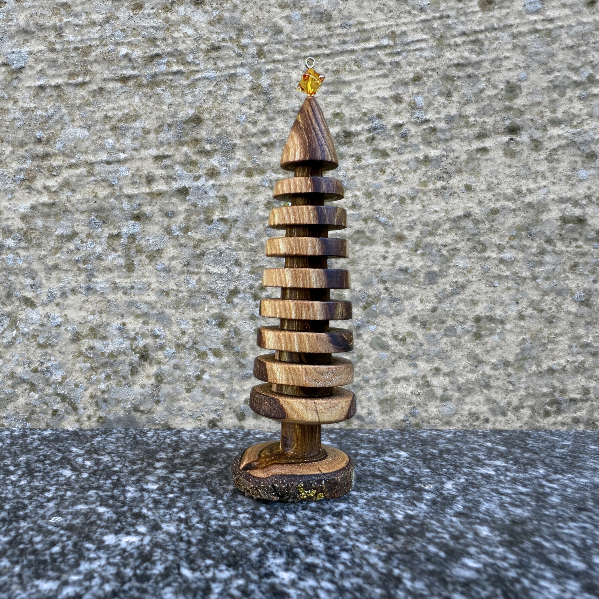 Jeder kleine Weihnachtsbaum wird von Erik bei Ravgården sorgfältig von Hand gedrechselt – ein einzigartiges Stück Handwerkskunst, bei dem Goldregenholz mit seiner goldbraunen Maserung und natürlichen Wärme auf den sanften Schein von Bernstein trifft.