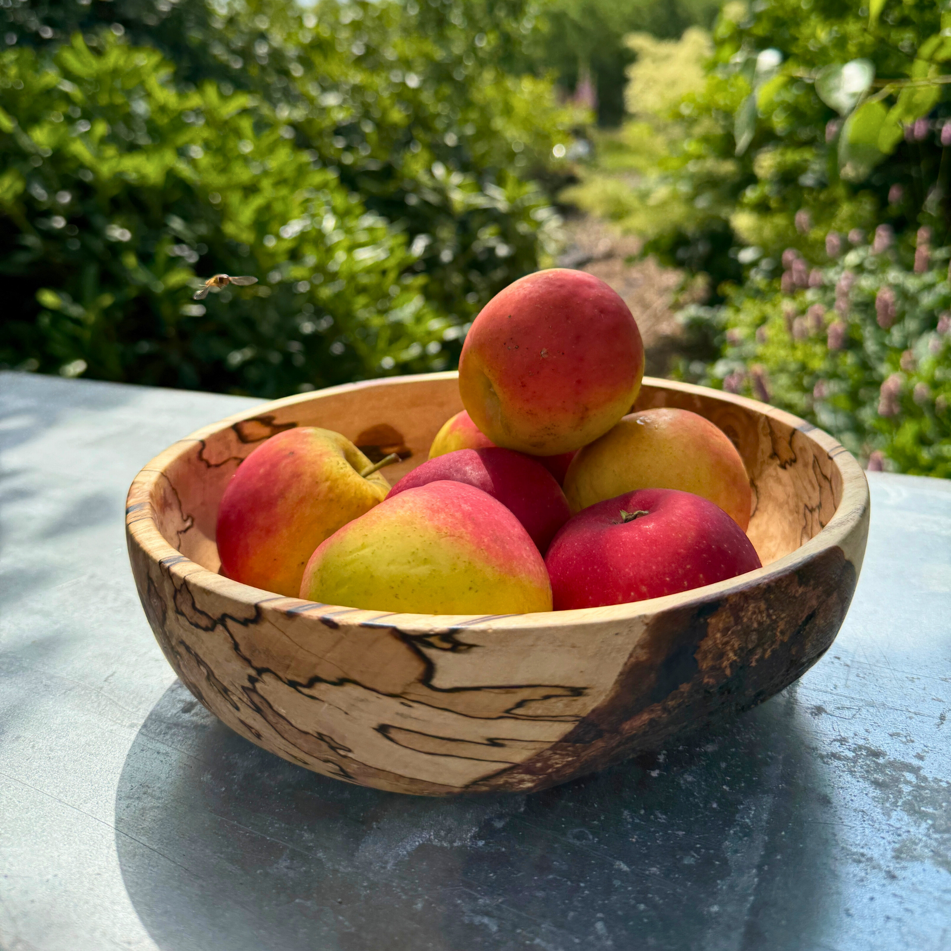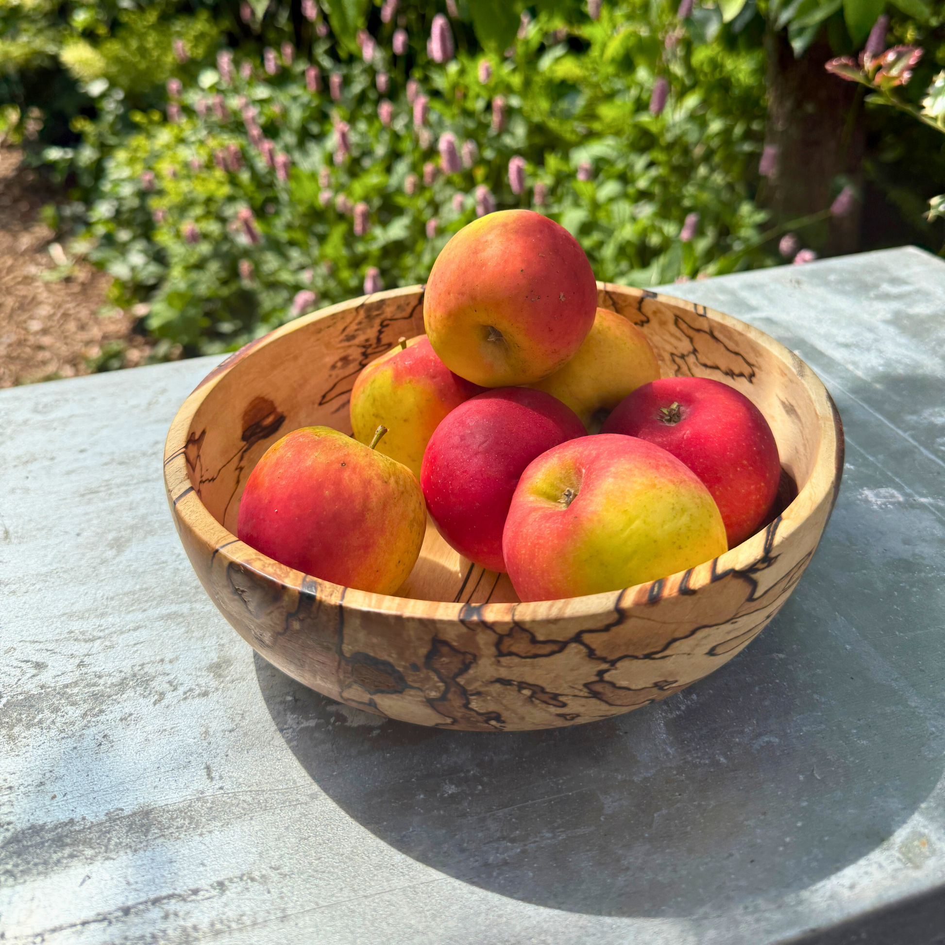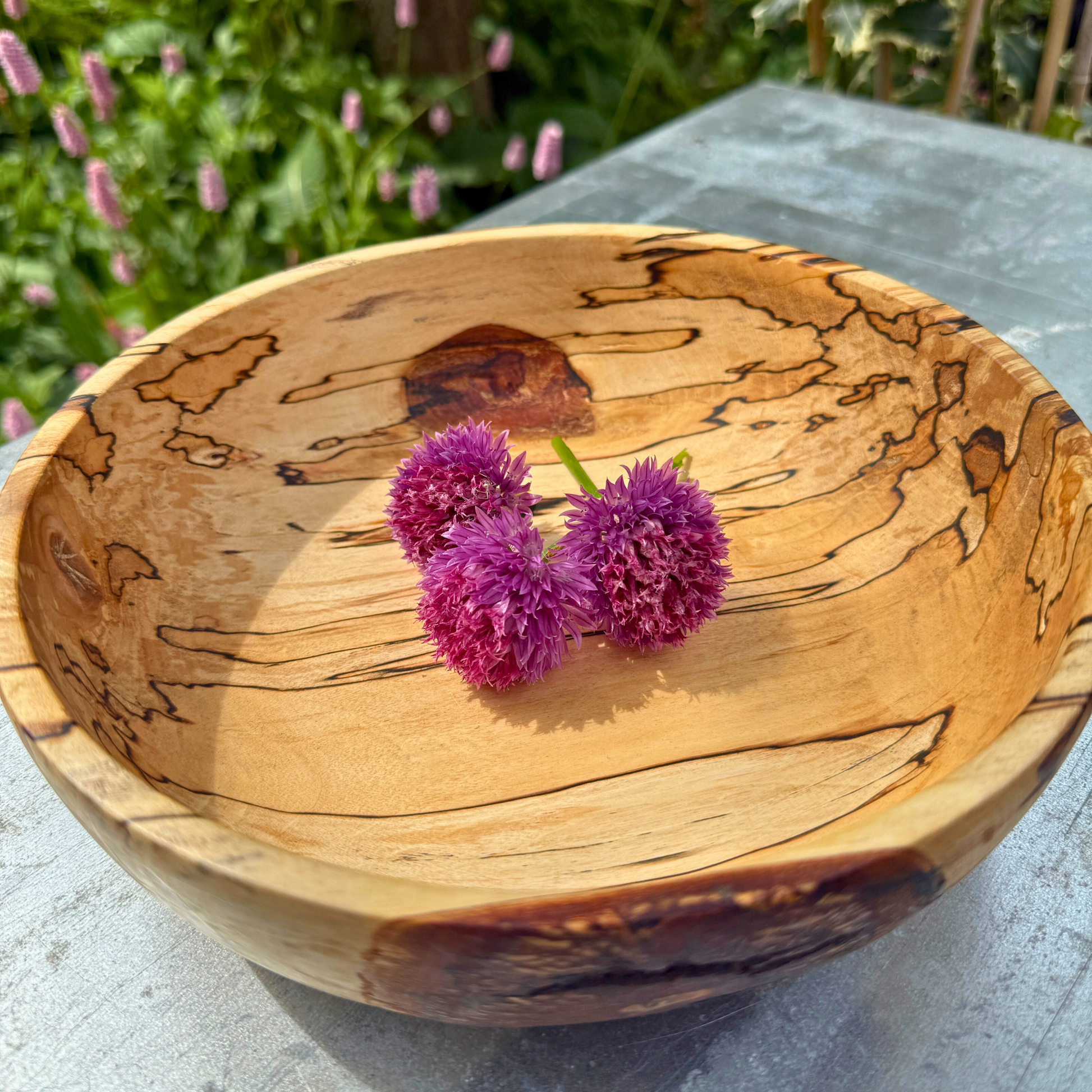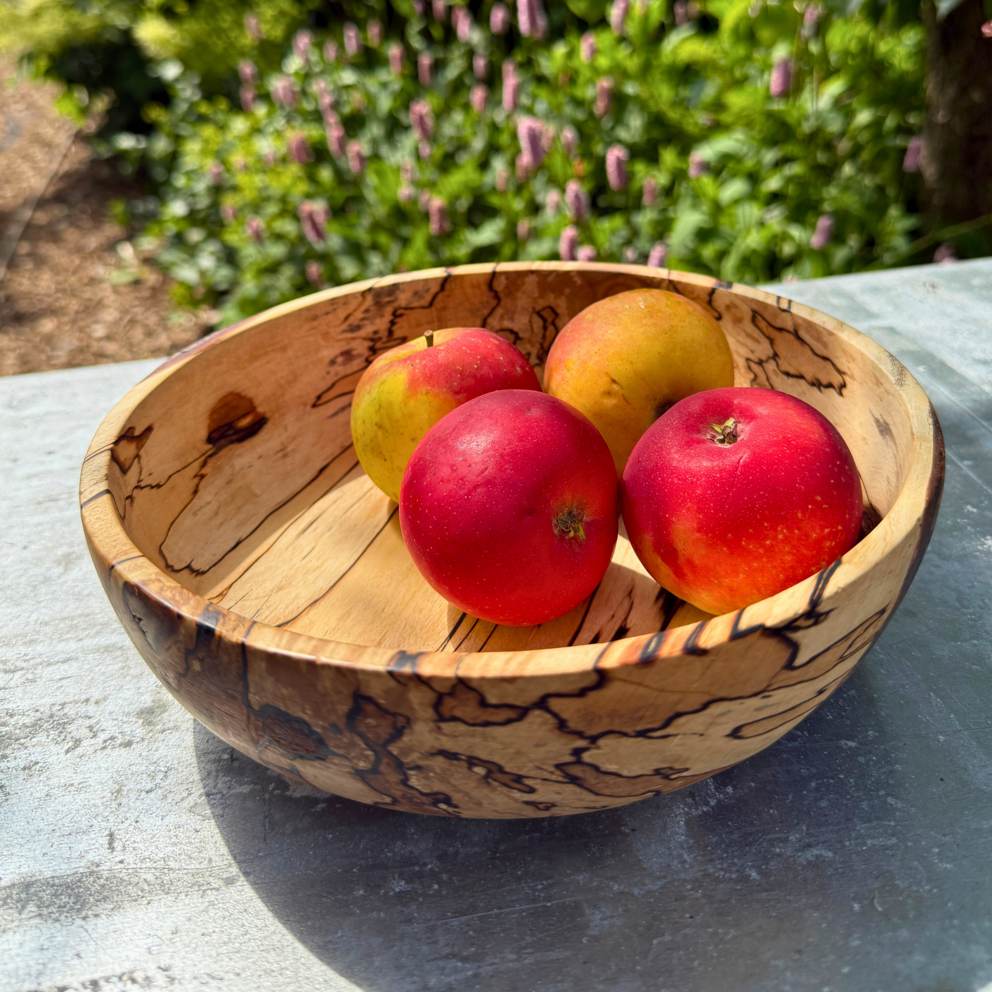 Die Schale weist wunderschöne Spaltmuster auf – natürliche dunkle Linien, die sich mit der Zeit bilden – kombiniert mit einer weichen, abgerundeten Form und einem niedrigen Profil , wodurch sie sich perfekt als Obstschale , Tafelaufsatz oder skulpturales Objekt für Ihr Zuhause eignet.