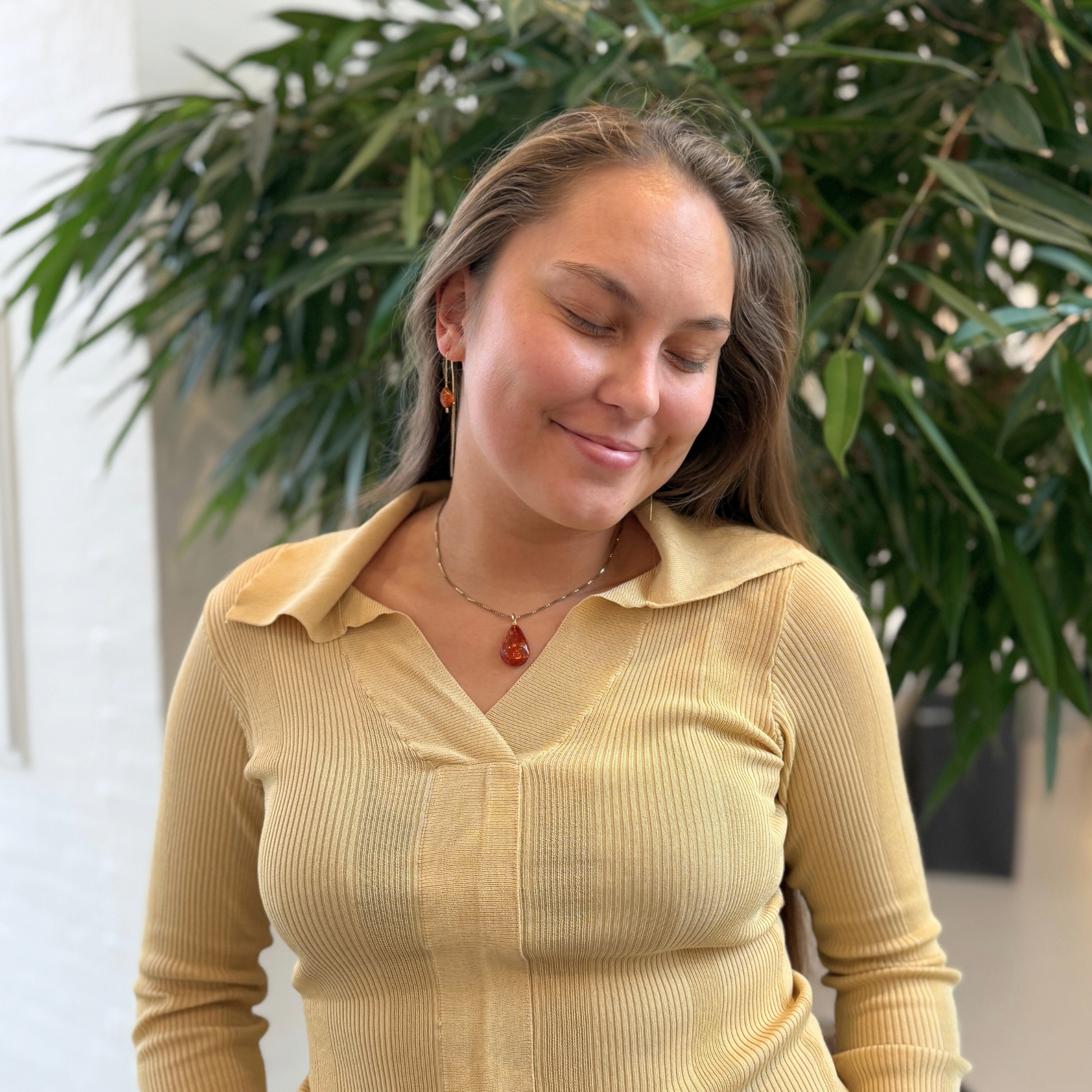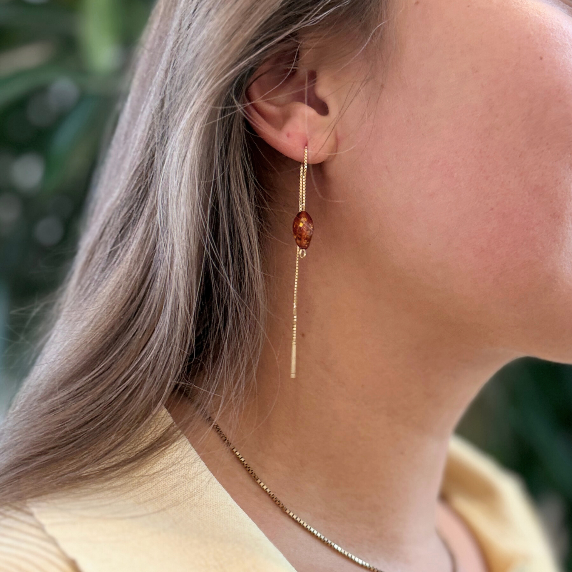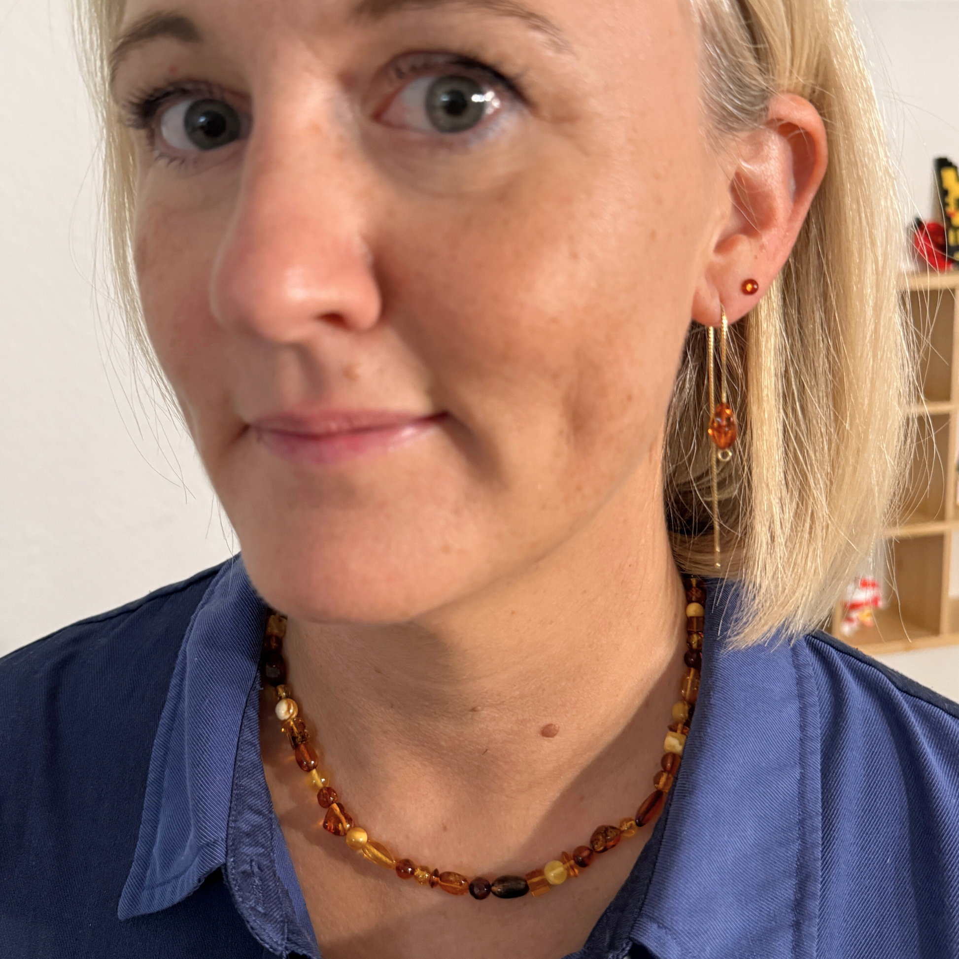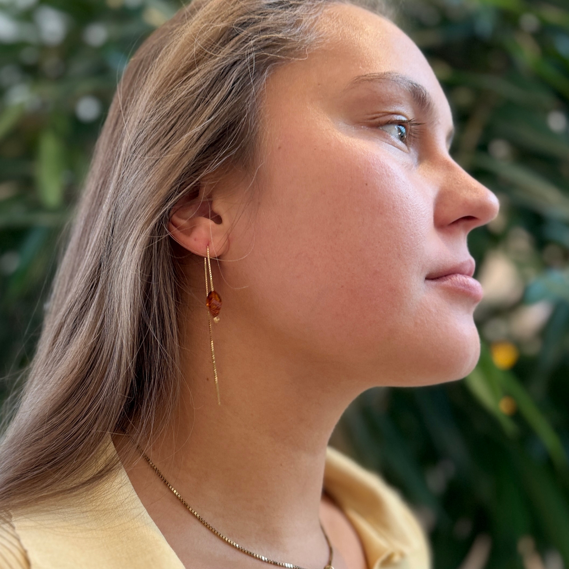 Die warme Farbe und natürliche Tiefe des Bernsteins stehen in schönem Kontrast zum klaren, modernen Ausdruck des Silbers. Die Ohrringe sind leicht und angenehm zu tragen – geprägt von der organischen Wärme und dem sanften Glanz des Materials.