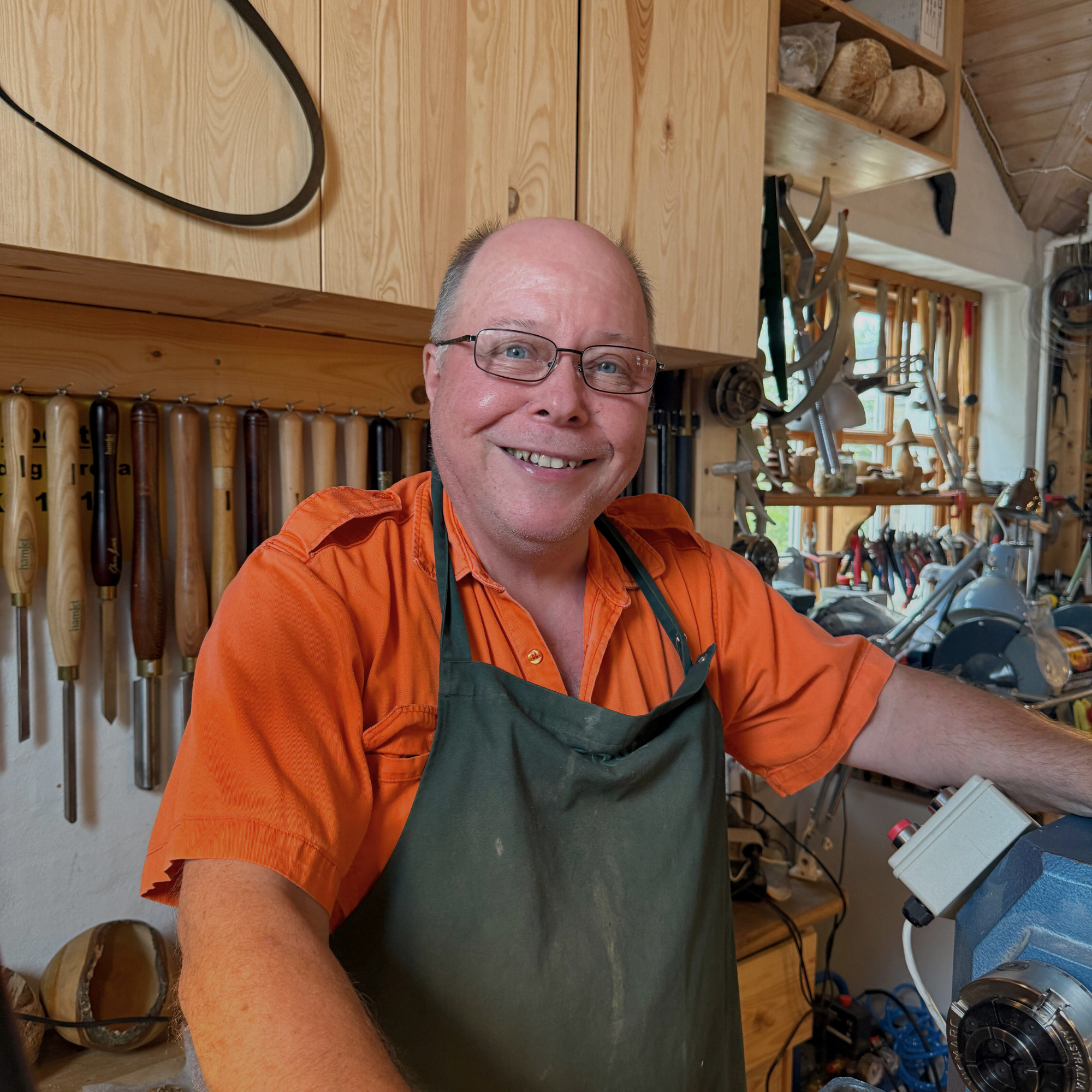 Erik has worked with amber for over four decades and is both a true craftsman and an artist at heart. He not only preserves traditional polishing techniques but also brings creativity into the workshop through woodturning — letting nature guide the form and expression of every piece.