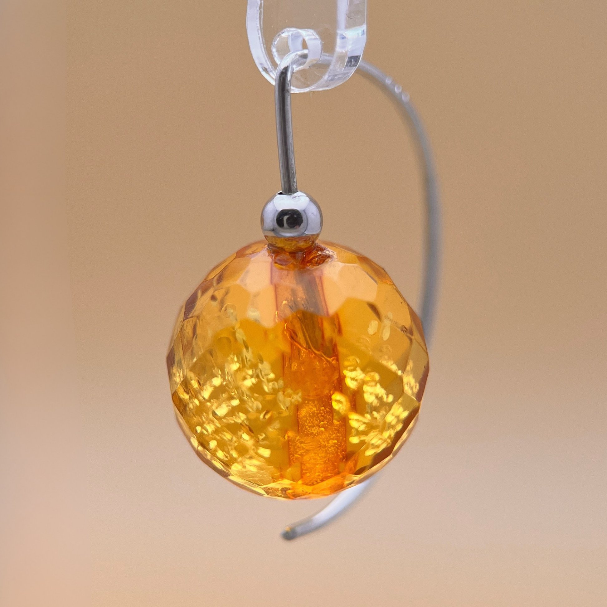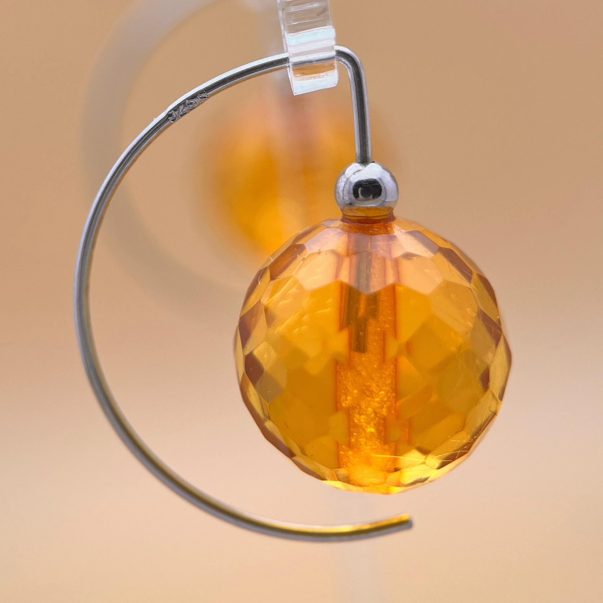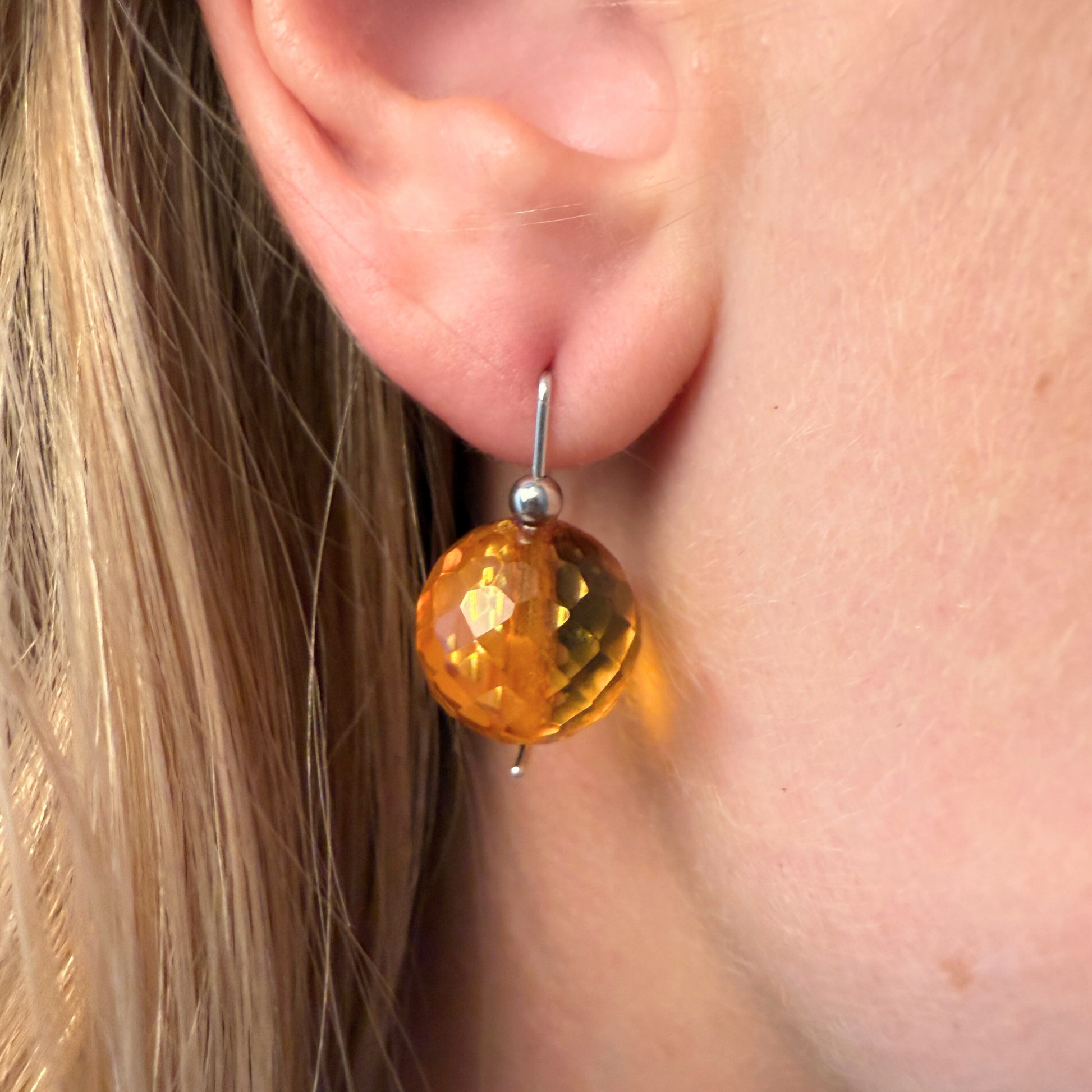 The faceted amber reflects the light beautifully from every angle, creating a lively surface full of movement and depth. Each cut enhances the bead’s natural glow, making this pair particularly eye-catching while still maintaining its lightness and everyday wearability.