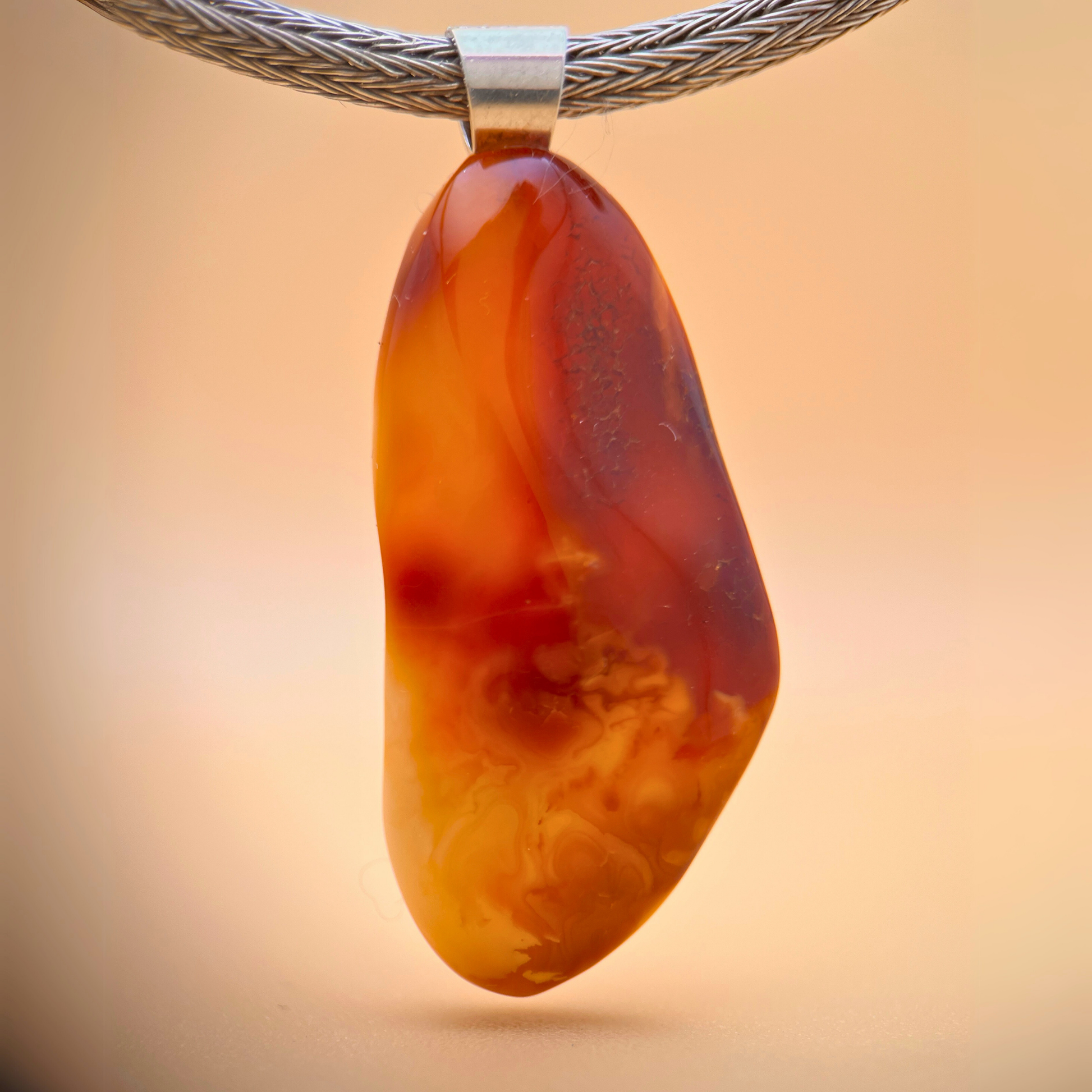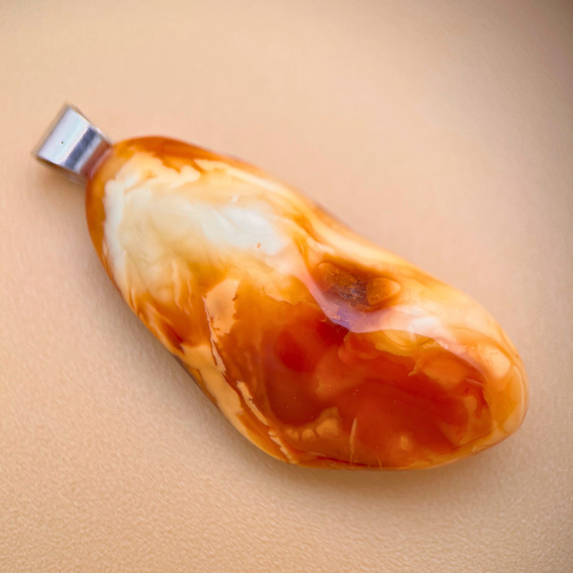 The natural flow of color makes this pendant truly unique – like a tiny landscape captured in amber. A refined design that highlights the organic beauty of Baltic amber in its most artistic form.