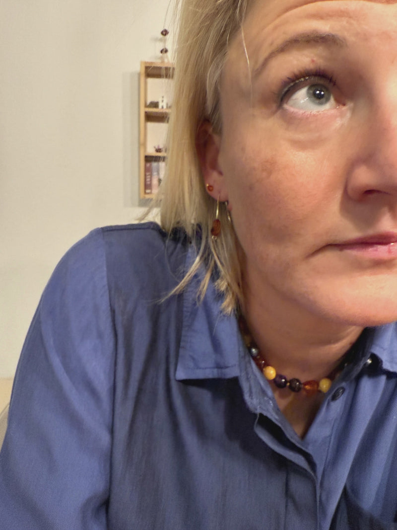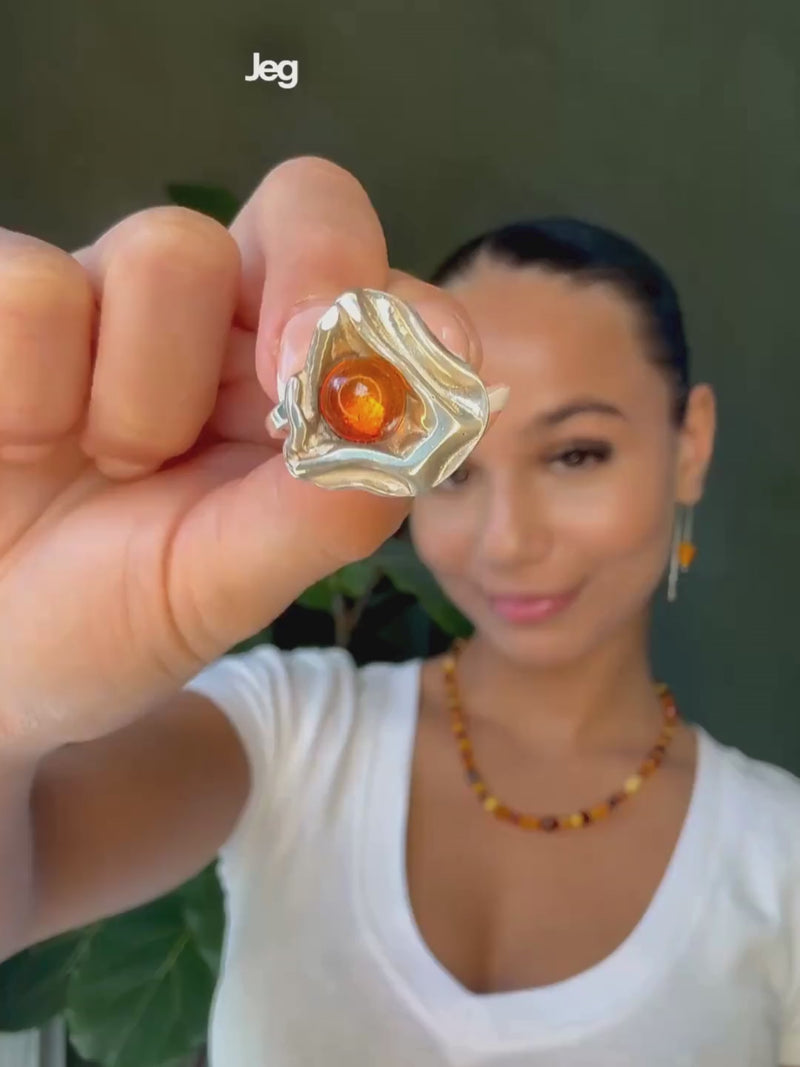 This one-of-a-kind necklace is handcrafted from natural citrus-yellow amber – a warm, luminous shade filled with beautiful plant inclusions that reveal the quiet stories of nature. No two amber beads are alike, and this piece exists only in a single version. There will never be another exactly like it.